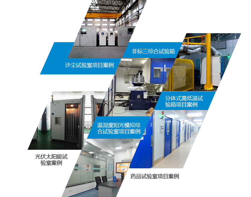 公司主要产品:高低温试验箱、高低温交变湿热试验箱、超大型步入式温湿度试验舱、快速温变(湿热)试验箱(步入式)、高温箱、温度冲击试验箱(两箱式和三箱式)、盐雾腐蚀试验箱(复合交变湿热、复合交变湿热盐水喷射)、砂尘试验箱(国标与军标)、淋雨试验箱(国标系列和军标系列)、臭氧箱、二氧化硫箱、三综合(四综合)试验箱、阳光模拟试验箱、综合环境试验舱(含高低温循环/阳光模拟/阵风/淋雨/降雪试验)、氢燃料电池/发动机环境模拟试验舱系列、超低温箱、低气压(湿热)试验箱、紫外老化箱及非标可靠性试验设备。
